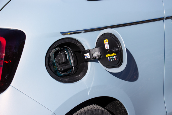 Aki hosszabb távú utakban gondolkodik a kis Fiat 500e-vel, célszerű a 85 kW-os egyenáramú töltési lehetőséget választania. Ezzel a módszerrel 35 perc alatt feltölthetjük az akkumulátort 100 %-os töltési szintre. Azt azonban meg kell említeni, hogy a vaskos töltőkábel jó sok helyet fog elfoglalni el az amúgy is miniatűr méretű csomagtartóban.